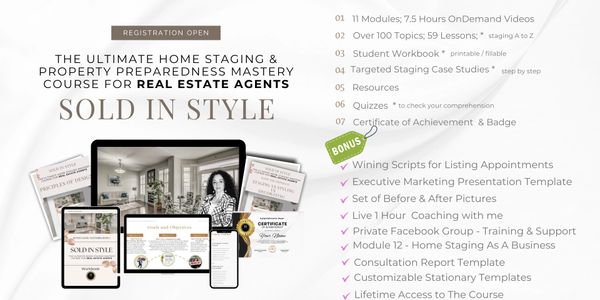 SOLD IN Style Home Staging Mastery Course it's strategically designed by realtors, for realtors, introducing a system proven by realtors to work 100% of the time.